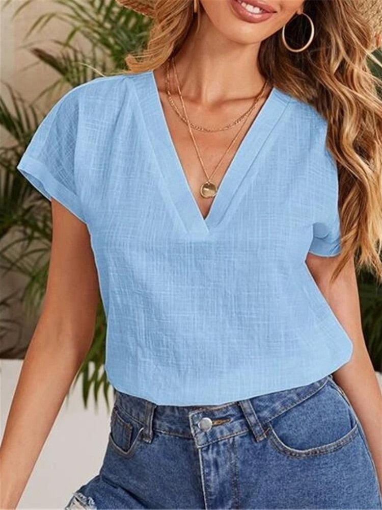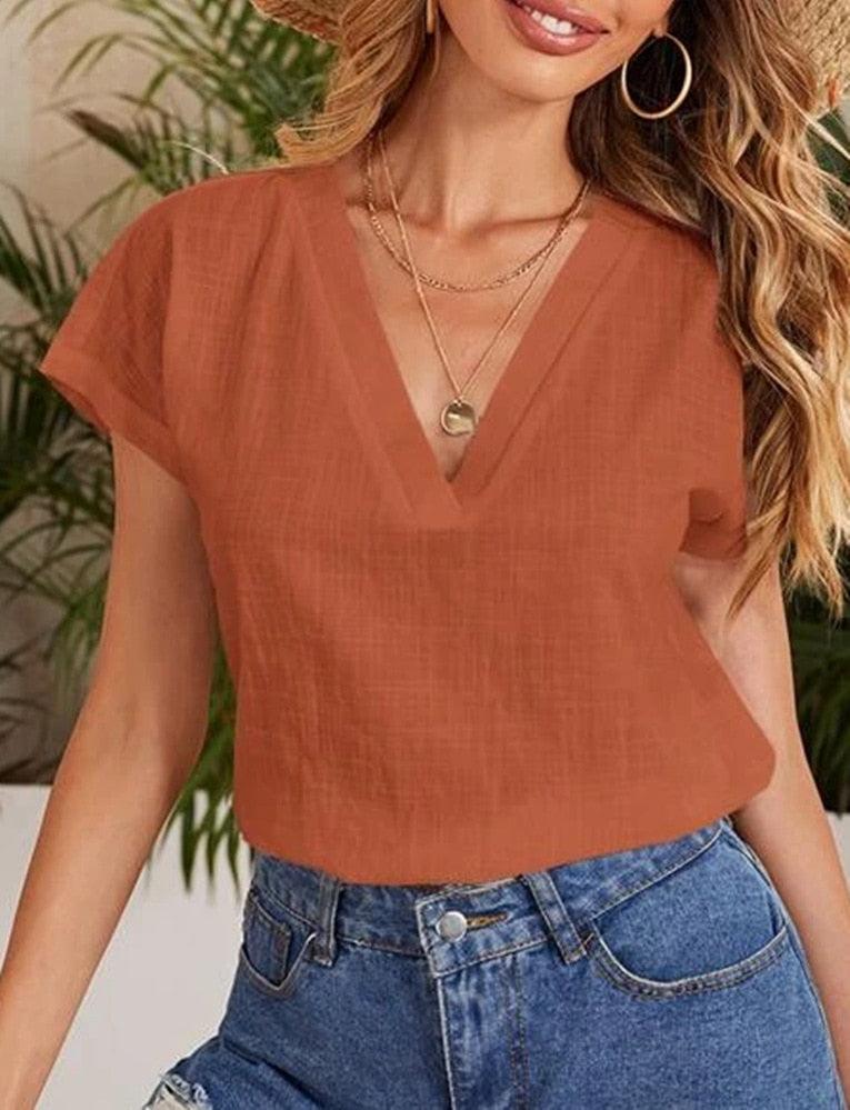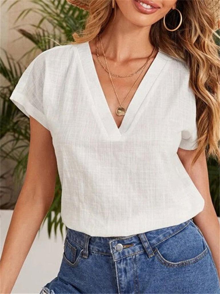Casual Damesblouse – Linnen & Katoen – V-Hals Comfort
